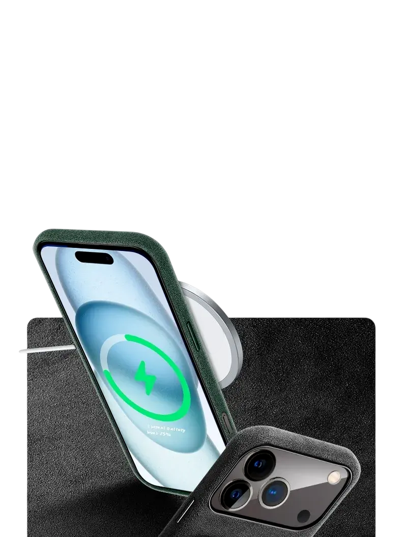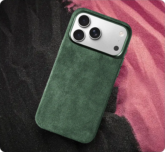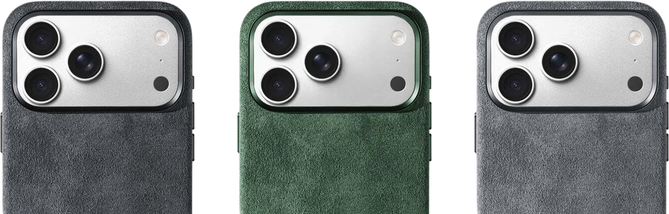 A suede-like Alcantara-touch finish meets the clean geometry of iPhone 17 for a quietly luxurious look.