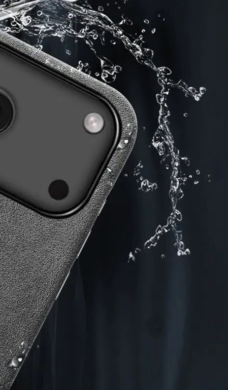 The suede-like exterior gives secure grip; beneath it a rigid protective shell and soft microfiber lining cradle your phone against daily knocks and micro-abrasions.
