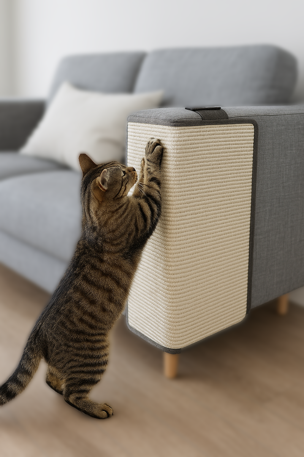 Crafted with tightly woven natural sisal and a soft polyester backing — durable for claws, gentle on fabric.