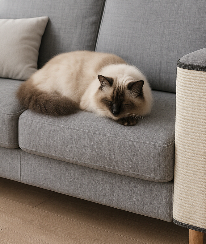 The removable Cat Sofa Shield blends seamlessly into your interior while protecting what matters most — your furniture and your peace of mind.