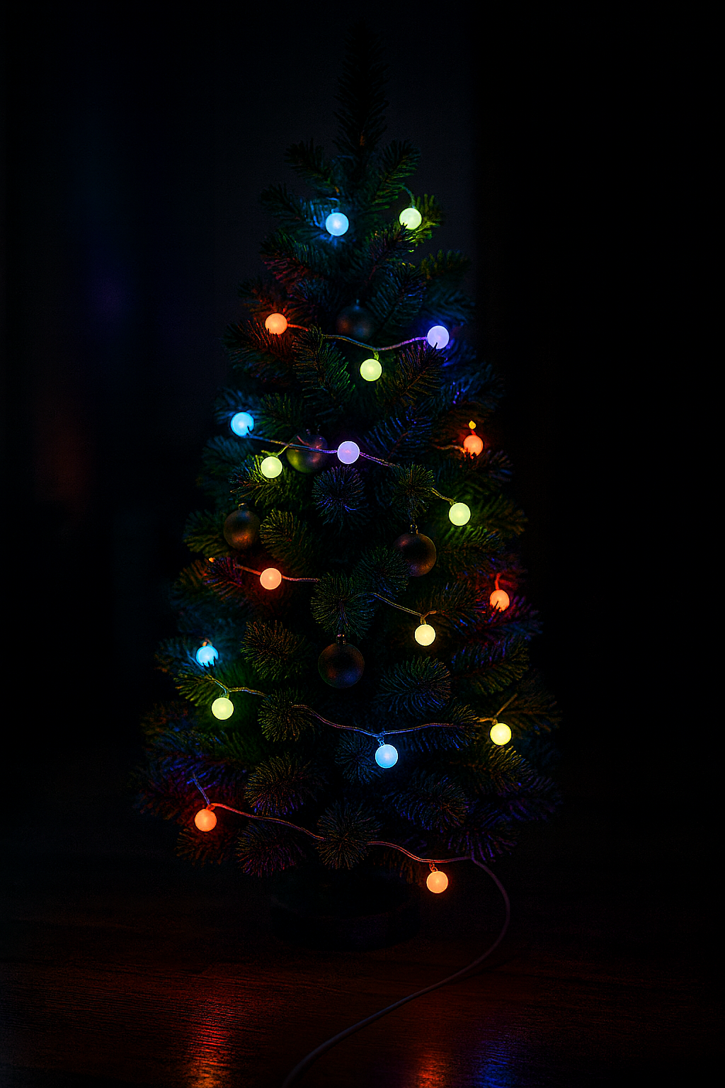Materials: plastic LED globes, flexible insulated cable